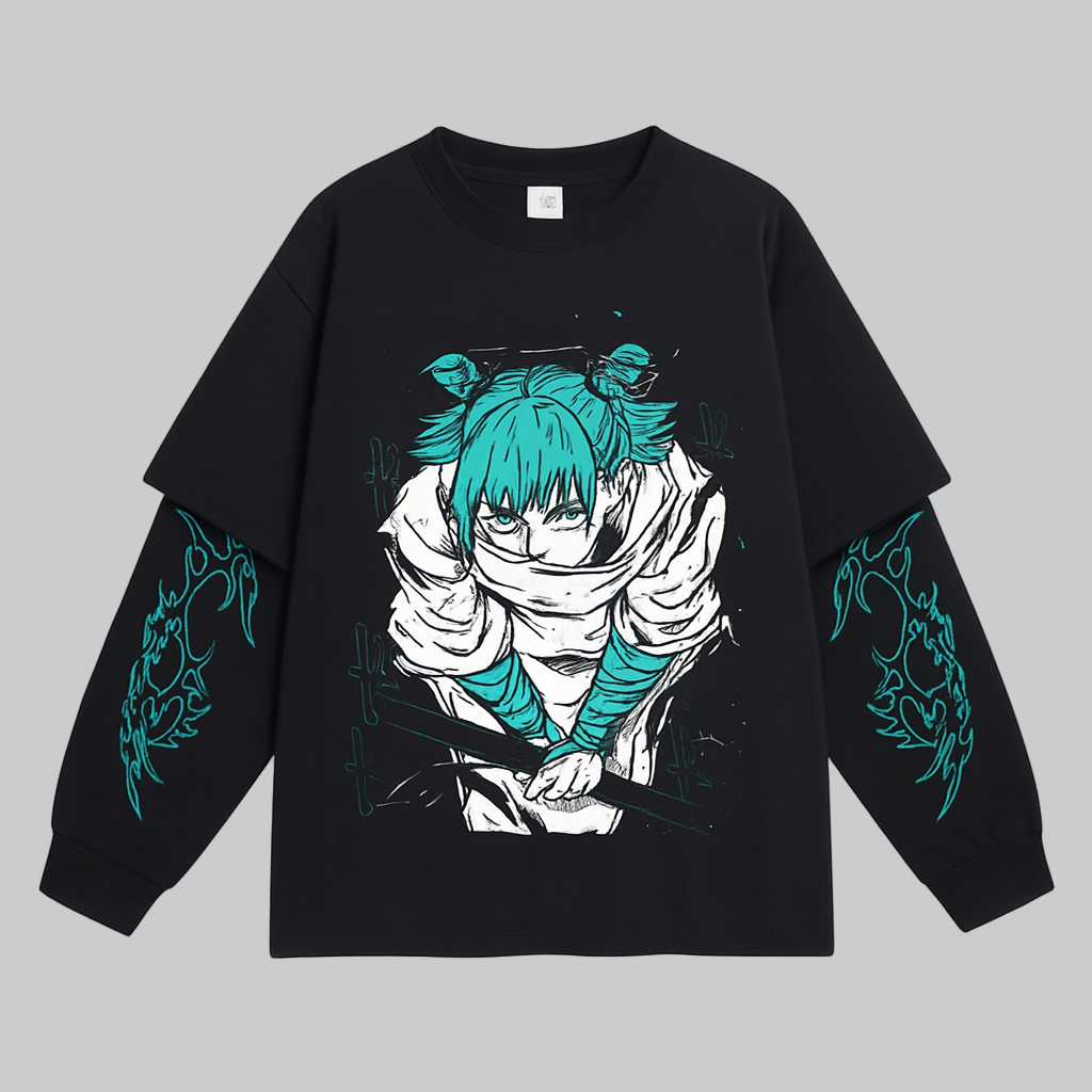 This oversized LS tee blends dark aesthetics with Japanese manga energy, making it perfect for fans of action anime, chaotic artwork, and edgy streetwear.