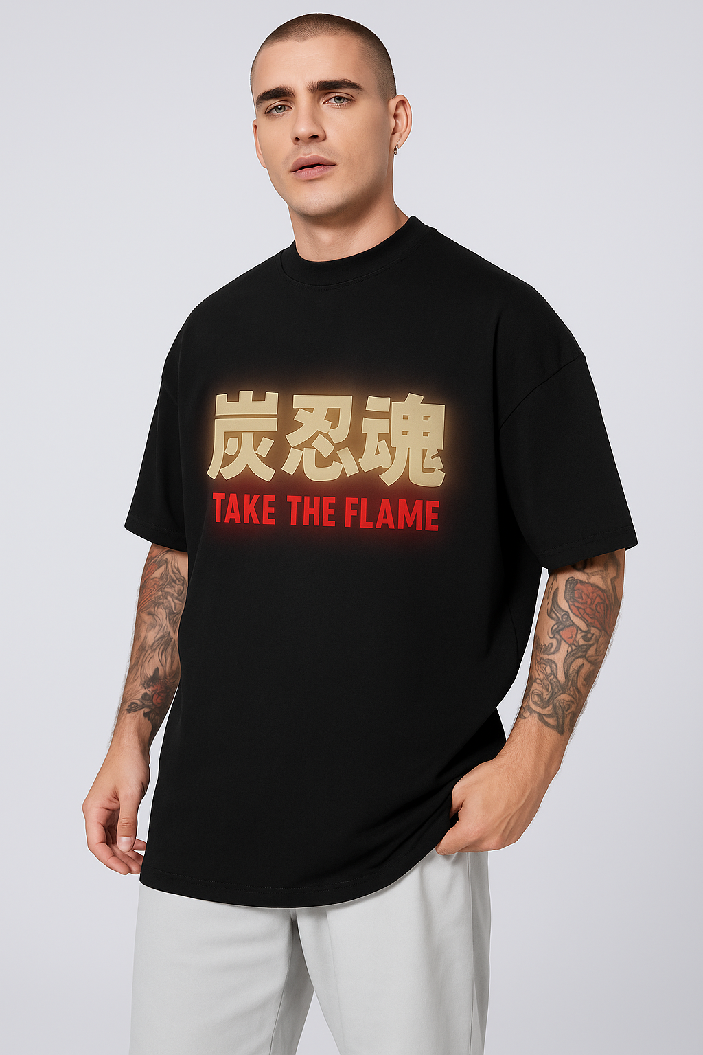 Made with premium 240 GSM heavy cotton, this oversized anime tee offers a bold drape, thick streetwear feel, and perfect drop-shoulder silhouette. The fiery Rengoku Flame Hashira artwork, inspired by Japanese manga detailing, gives this tee an intense, iconic anime look.